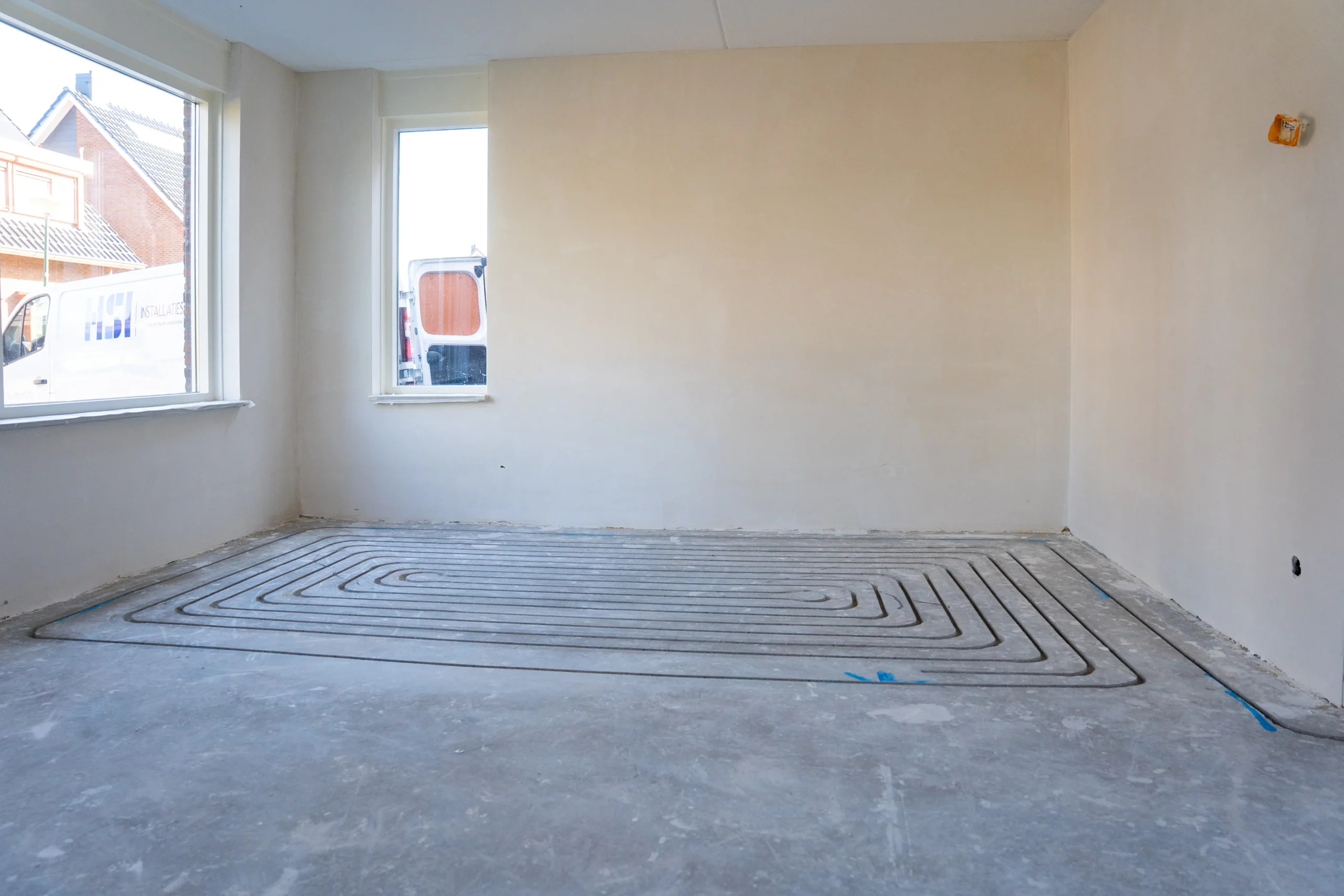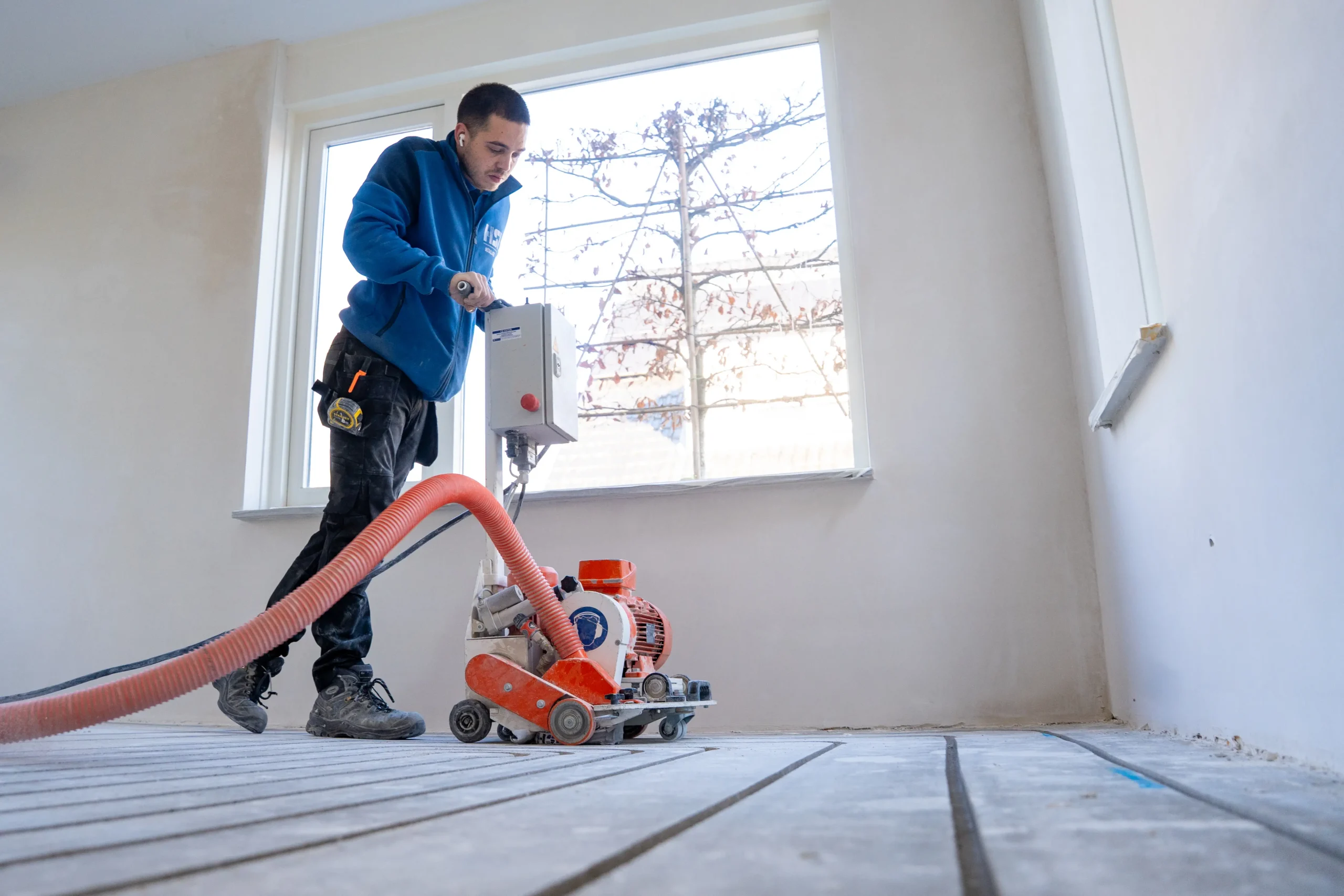 Na volledige montage hebben wij hier ook de sleuven netjes dichtgesmeerd. Vervolgens zijn de voedingen aangesloten, installatie gevuld, gespoeld en door onze installateur in bedrijf gesteld, zodat het systeem direct klaar is voor gebruik.